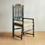 Gustavian armchair Reference: 799S Height: 108 cm Width: 50 cm Depth: 50 cm Gustavian armchair, original paint, 19th century, Sweden Previous Object Console Louis XV Next Object Head of a coat of arms Get in touch Pour toute information complémentaire, n'hésitez pas à nous envoyer un mail à cette adresse e-mail : simindg@hotmail.com Δ