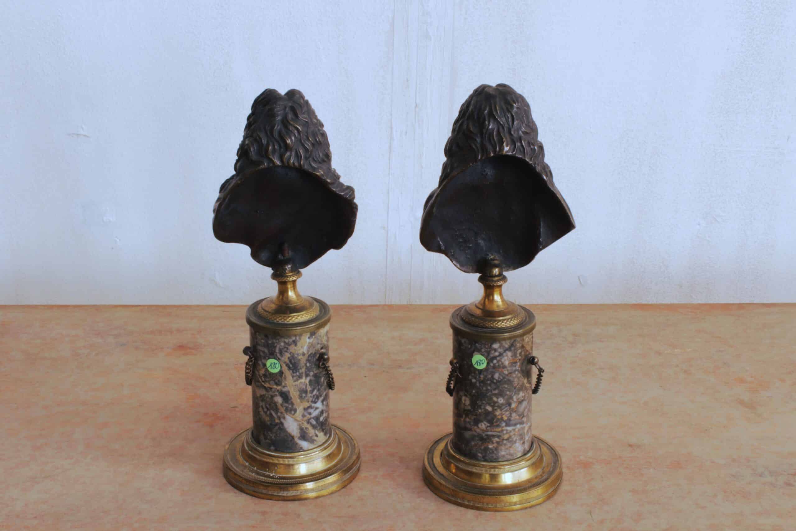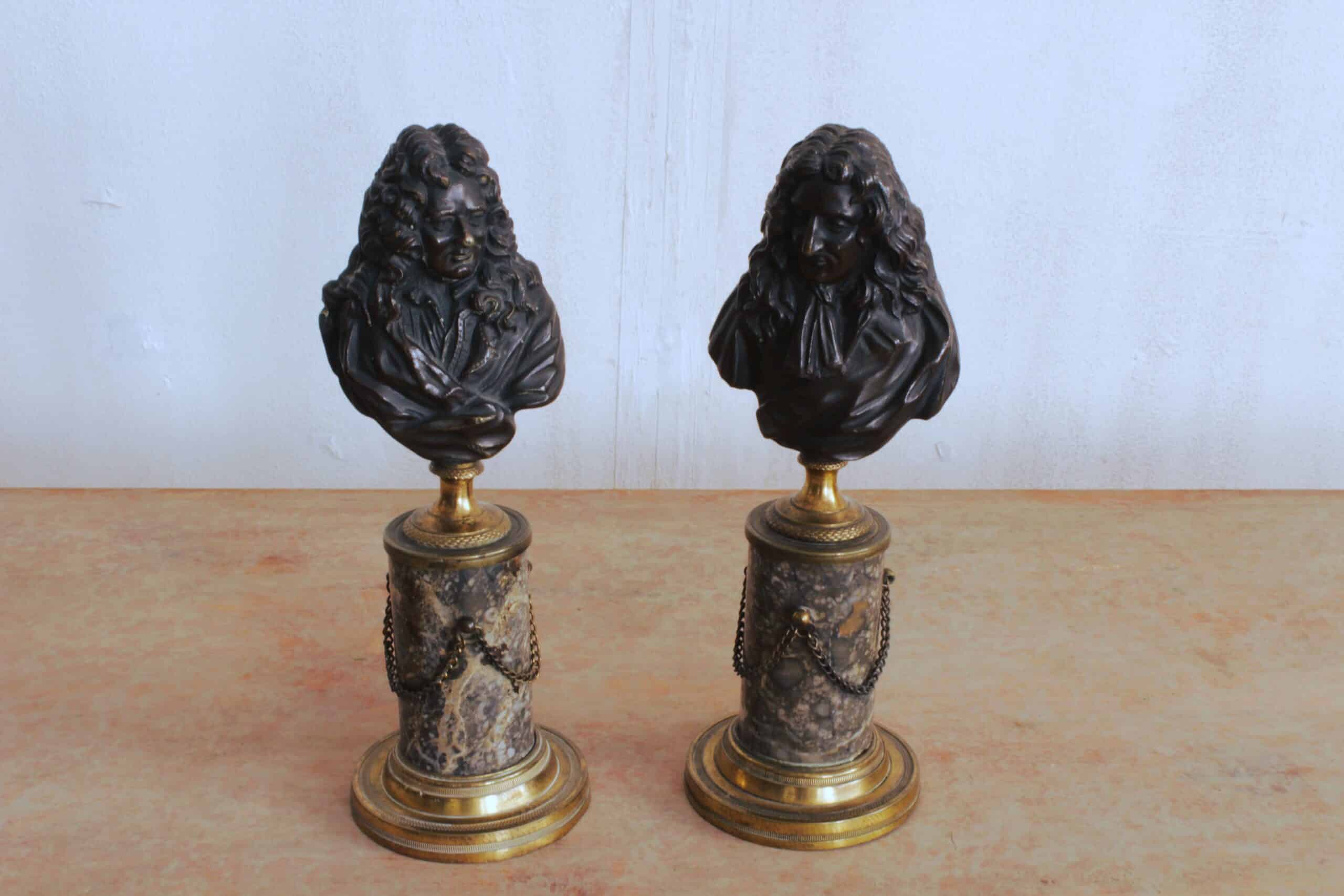 Pair of bronze busts Reference: 827ob Height: 23 cm Width: 8 cm Depth: 7 cm Pair of bronze busts, with marble bases, representing Vauban and de La Fontaine, period directoire, 18th century, France Previous Object Folk art wardrobe Next Object Pair of still life Get in touch Pour toute information complémentaire, n'hésitez pas à nous envoyer un mail à cette adresse e-mail : simindg@hotmail.com Δ