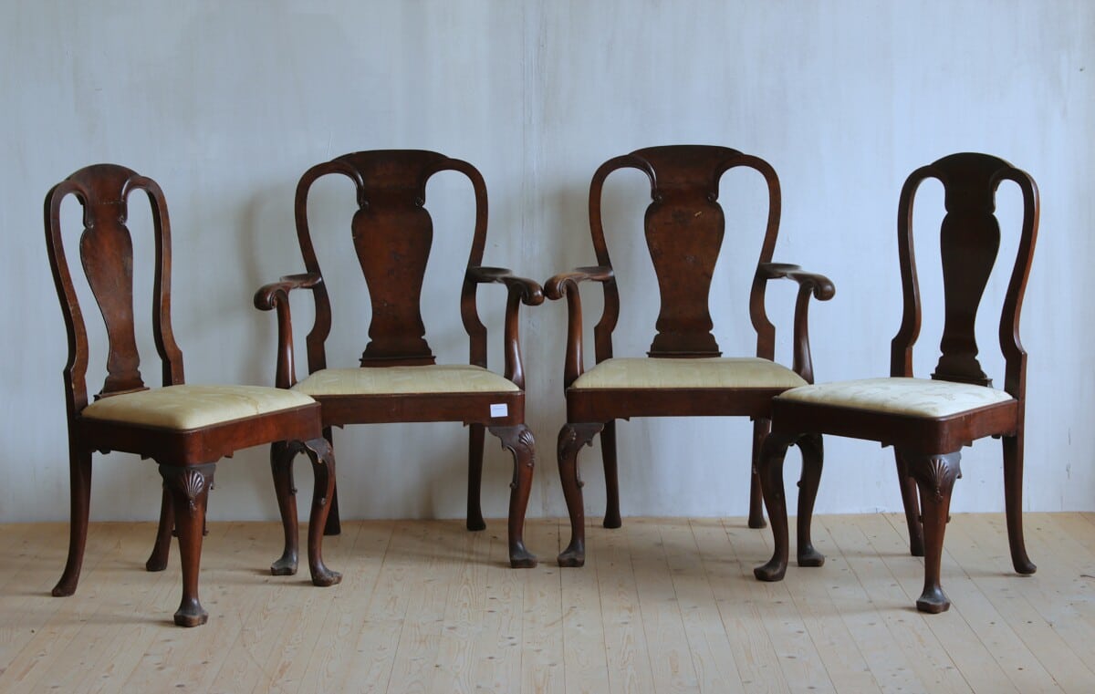 Serie of 6 chairs and 2 armchairs Reference: 919S Height: 102 cm Width: 58 cm Depth: 42 cm Serie of 6 chairs and 2 armchairs, period georgian, natural wood, 19th century, UK Next Object Mora clock Get in touch Pour toute information complémentaire, n'hésitez pas à nous envoyer un mail à cette adresse e-mail : simindg@hotmail.com Δ